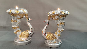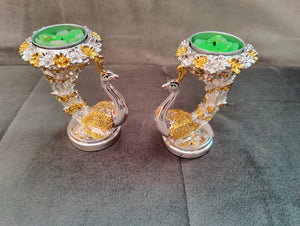 Peacock candle stand gold and silver pair 4"