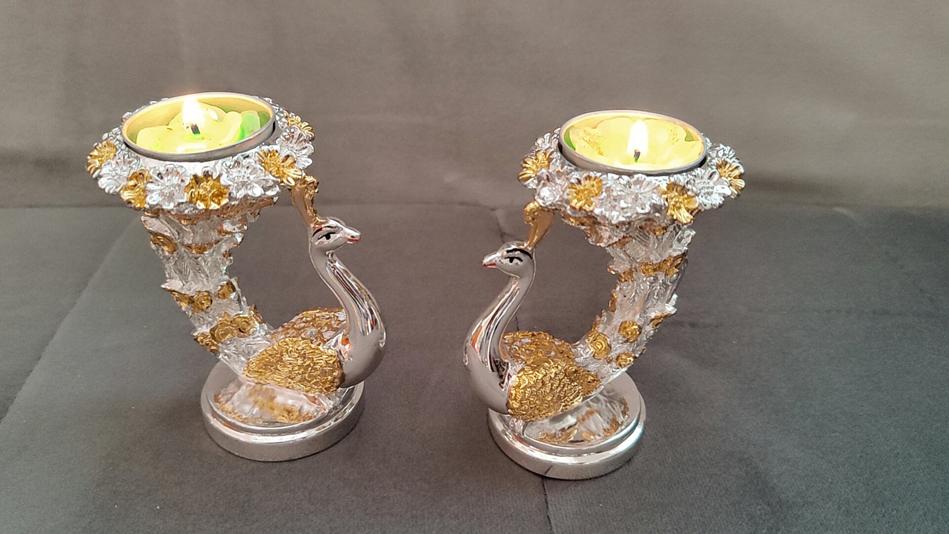 Pure silver and gold coated peacock 🦚 candle stand ideal for home pooja decor ideal for return gifts for any occasion Daily use possible
